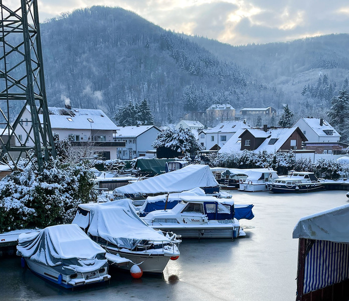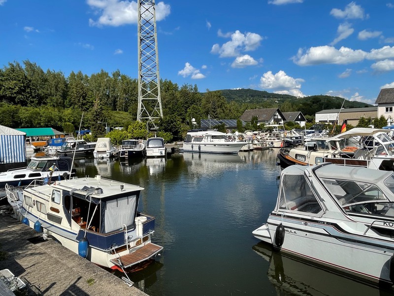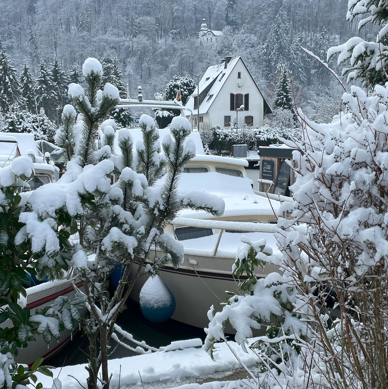 Der Yachthafen liegt im Naturpark Nassau inmitten einer Wohnbebauung.